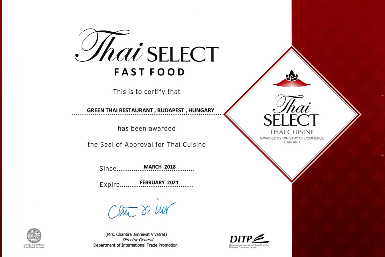 Budapesti éttermünkben Tamási Zoltán Okl. Thai szakácsművész jóvoltából megismerkedhet az eredeti, autentikus és egészséges thai ételekkel, mindezt sajátos megoldásban, a GreenThai ételbárban látványkonyhával különleges atmoszférában fogyaszthatják el a megrendelt finomságokat.
